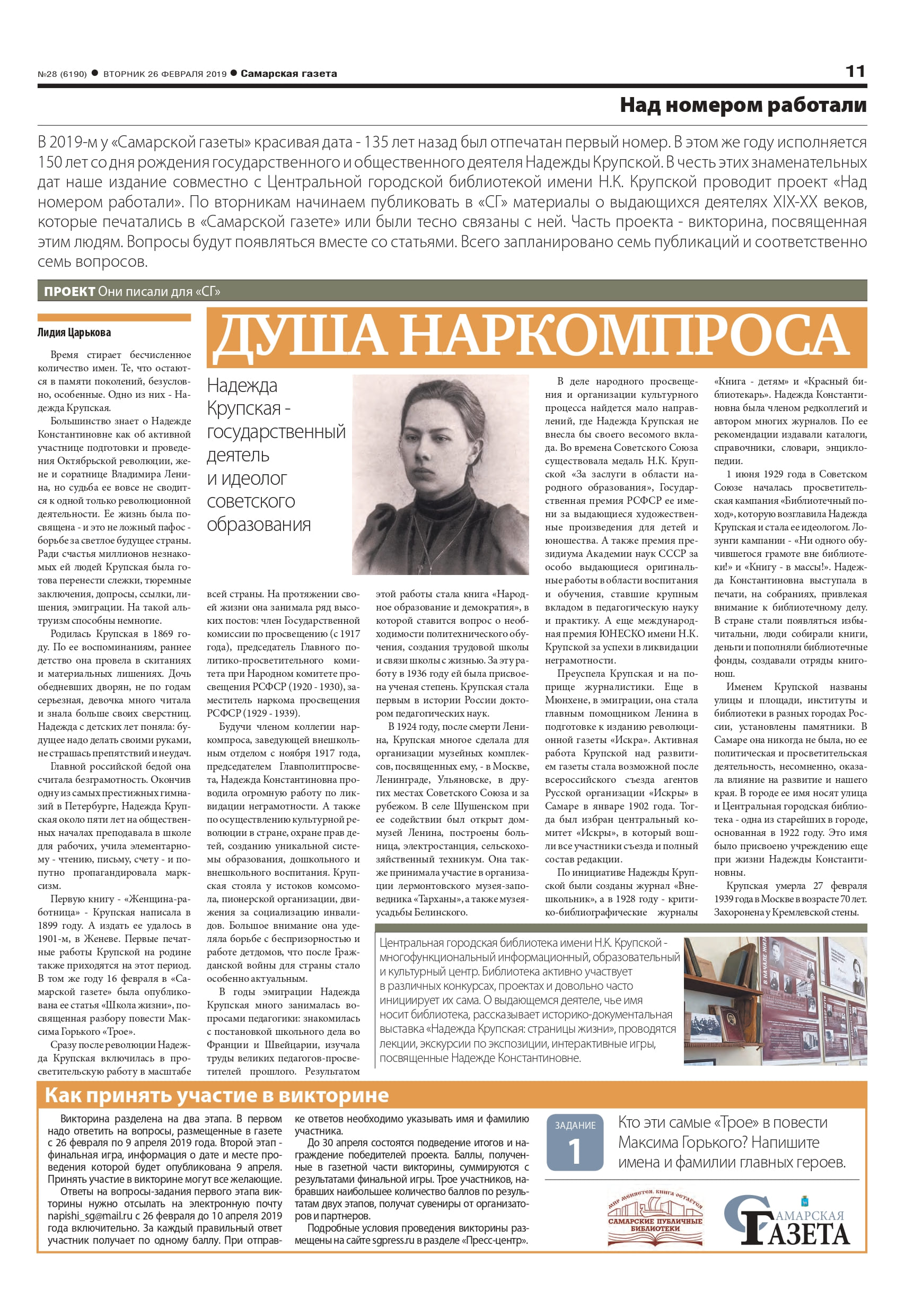 26.02.2019 г., «Самарская газета» №28 /6190/ стр. 11