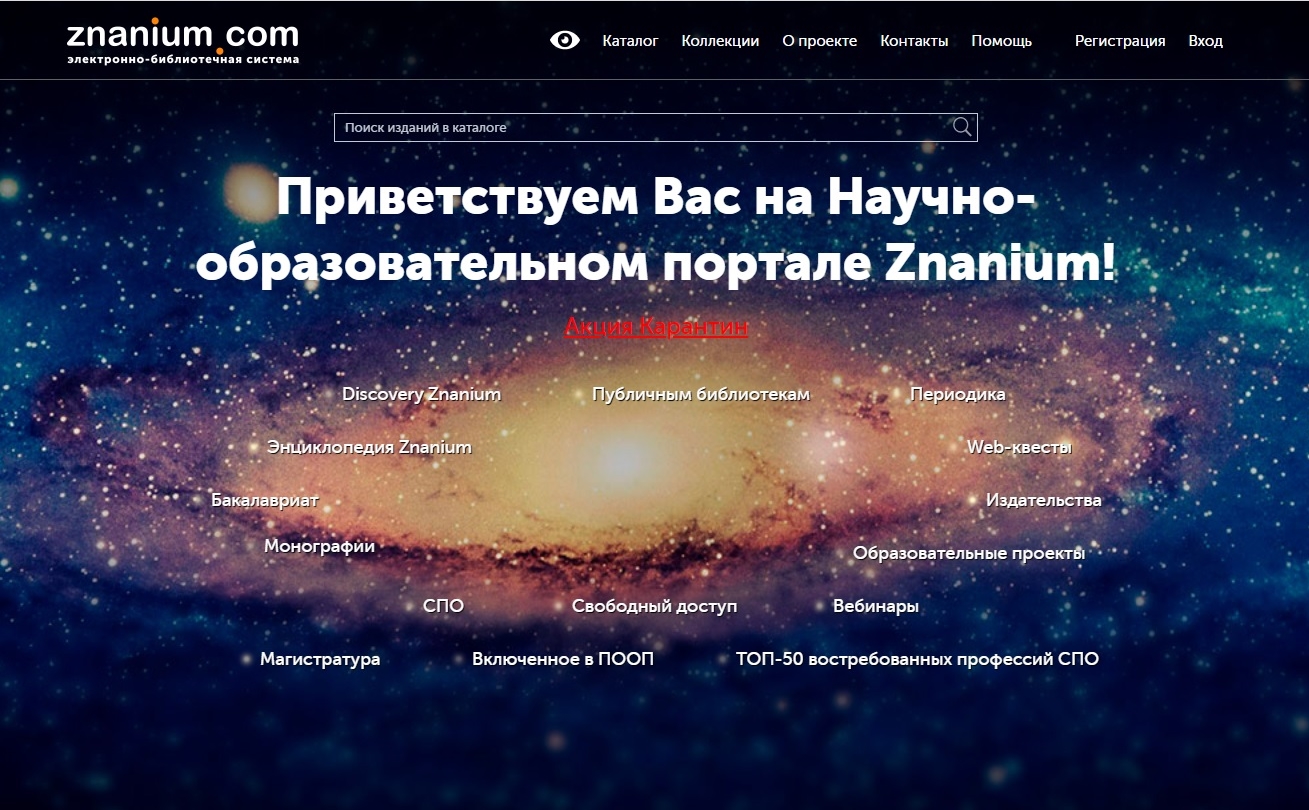 Znanium.com – это электронно-библиотечная система с обширным каталогом электронных версий книг, журналов, статей. Кроме того, это информационный портал, предоставляющий онлайн-доступ к большому фонду учебной и научной литературы.