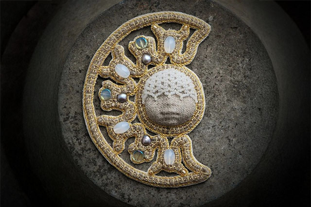 Авторская коллекция елочных украшений Кати Игнатьевой, отсылающих к женским головным уборам XVII-XIX веков. Игрушки созданы в смешанной технике. Основная — прорезное сажение по бели. Вышивка выполнена на хлопковой ткани, хлопковым и льняным шнуром (бель). Работы расшиты стеклянными бусинами и бисером, бусинами из ракушки с перламутром, металлическими элементами. Мастер делает акцент на традиционной русской вышивке, оставляя лицо игрушки без росписи.