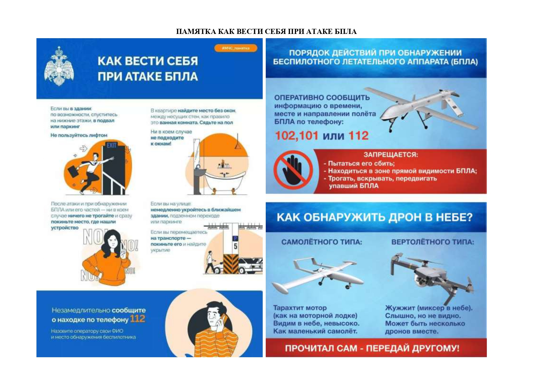 Скачать брошюру "Памятка по действиям населения при обнаружении беспилотного летательного аппарата (БПЛА)"