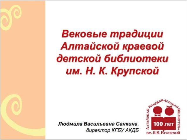 «Вековые традиции Алтайской краевой детской библиотеки имени Н.К. Крупской»