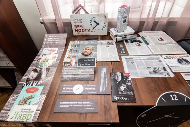 В Центральной городской библиотеке имени Н. К. Крупской прошла авторская выставка «Евгений Водолазкин: Взгляд за горизонт» (Автор: Фёдорочева Наталья), посвящённая творчеству одного из самых читаемых писателей современности – Евгения Германовича Водолазкина.
