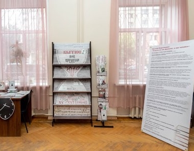 Для тех, кто ещё не успел познакомиться с произведениями писателя, на выставке представлены стендовое интервью и рассказы в увеличенном формате, которые помогут предварительно оценить особенности творчества Водолазкина и выбрать книги для домашнего чтения.