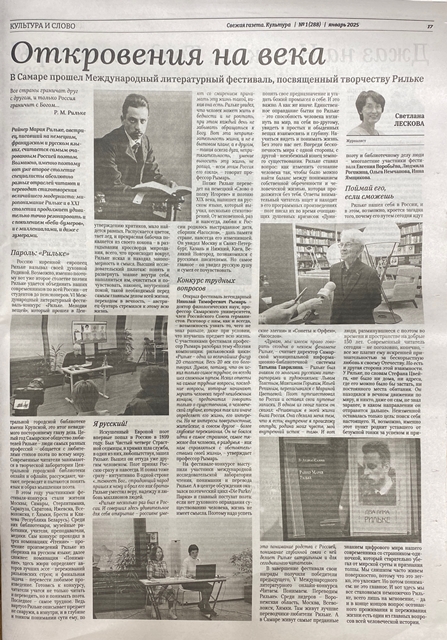 6 декабря 2024 года в Центральной городской библиотеке имени Н.К. Крупской состоялся VI Международный литературный онлайн фестиваль «Рильке. Мелодия вещей».