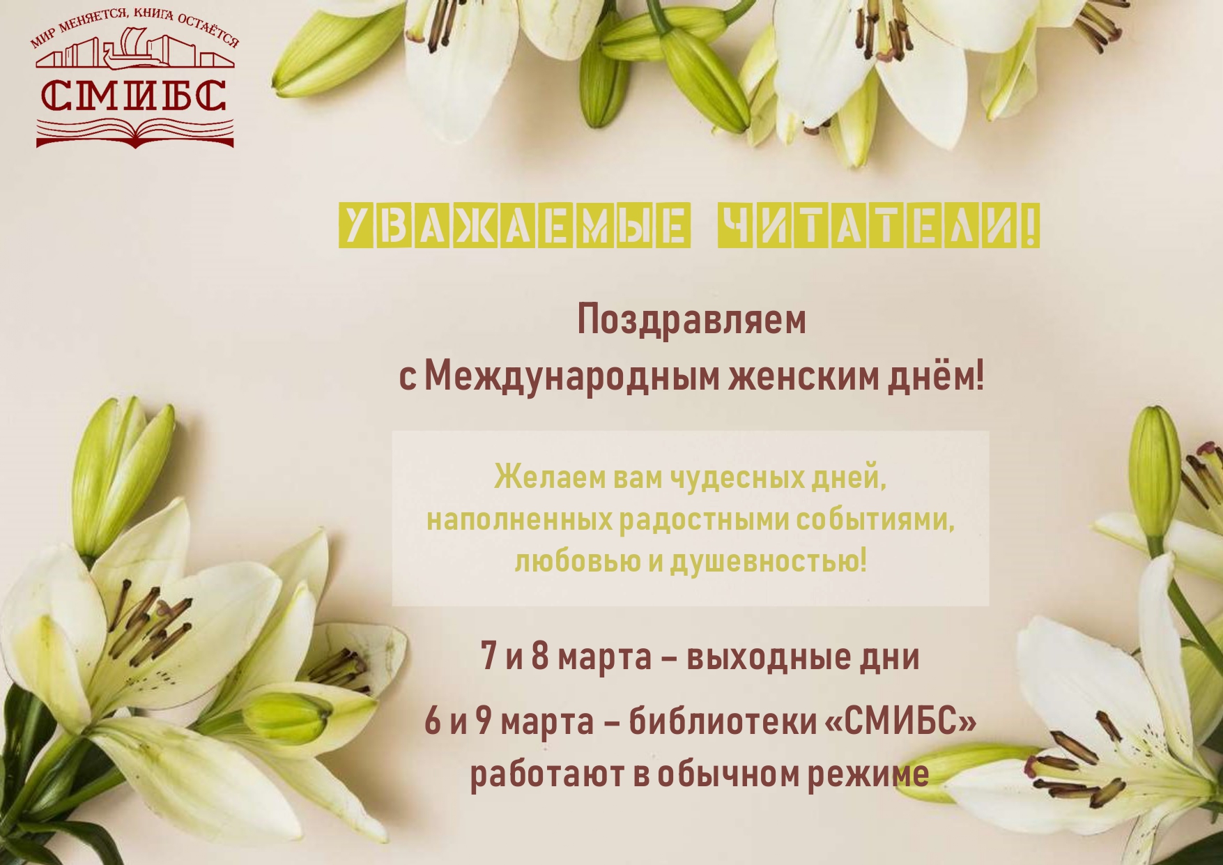 Обращаем ваше внимание на график работы библиотек «СМИБС» в праздничные дни.