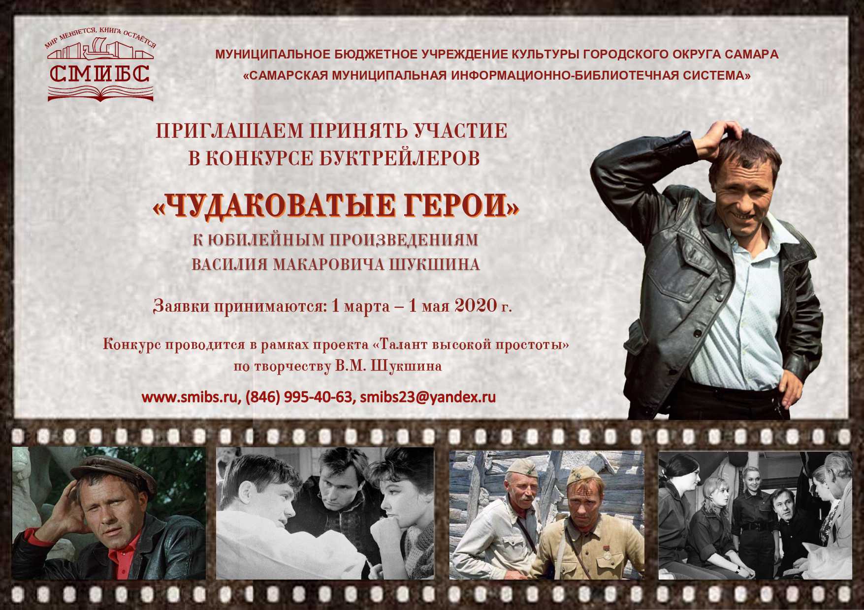 МБУК г.о. Самара «СМИБС» проводит конкурс буктрейлеров «Чудаковатые герои» к юбилейным произведениям Василия Макаровича Шукшина.
