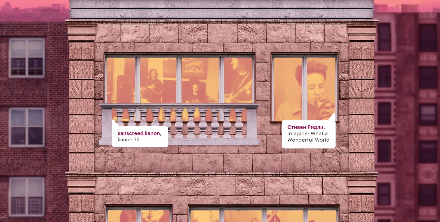 «РБК Стиль» авторитетно заявляет: «Даже когда мы одни дома, мы не одни». И в подтверждение этому писатели, драматурги и музыканты будут каждый день читать стихи, петь под гитару, играть на различных музыкальных инструментах.