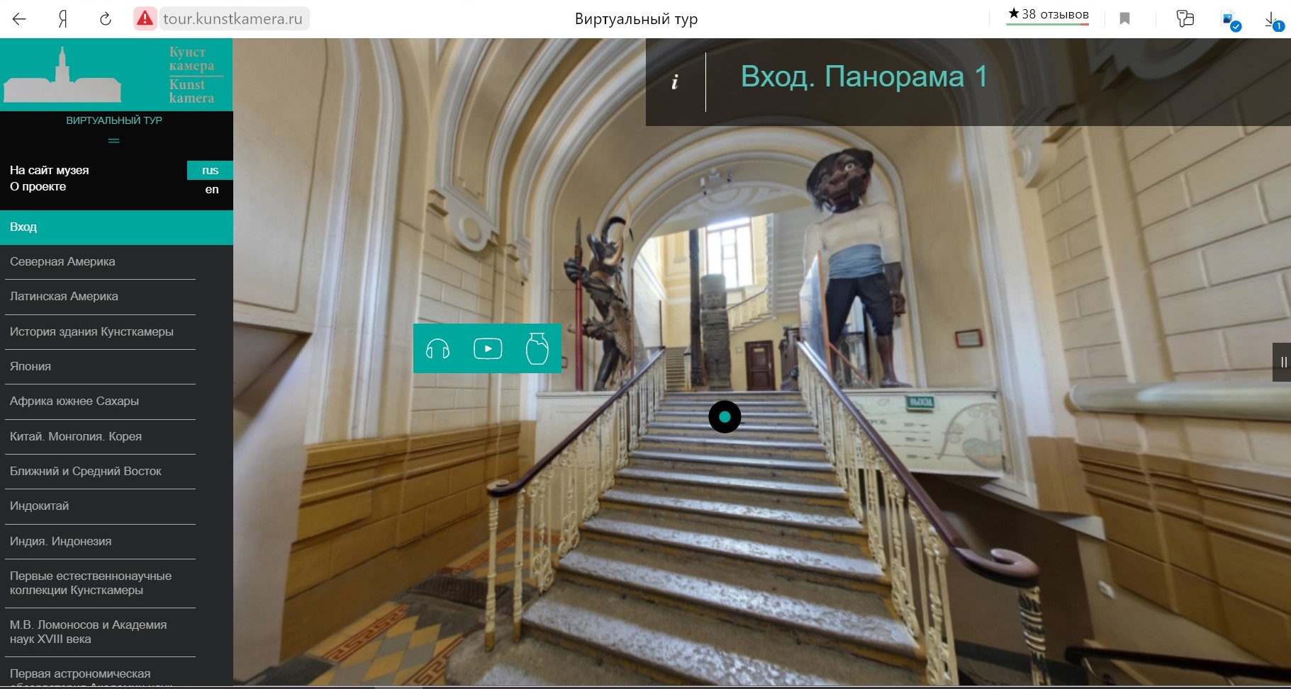 Кунсткамера – виртуальный тур по данному музею позволяет не только обойти все залы, рассмотреть вблизи экспонаты, но и прослушать аудиогид и посмотреть дополнительные видеоматериалы.