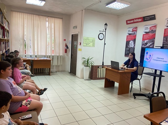 Библиотека №1 пригласила читателей на краеведческое мероприятие «Главный геральдический символ Самарского края». Библиотекарь рассказала об истории возникновения трех основных символов Самарской области – герба, флага и гимна. Участника узнали, что цвета полос боевого Самарского знамени XIX века легли в основу флагов города и области. В заключение была проведена викторина о Самарском крае, его природе и достопримечательностях.