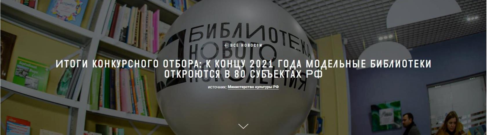Министерство культуры Российской Федерации объявило о результатах конкурсного отбора субъектов Российской Федерации на предоставление иных межбюджетных трансфертов на создание в 2021 году модельных муниципальных библиотек в рамках национального проекта «Культура».