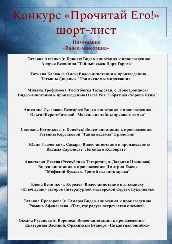 Вот и завершился II Всероссийский литературный онлайн-конкурс «Прочитай его!», ставший настоящим волшебством для любителей фэнтези.