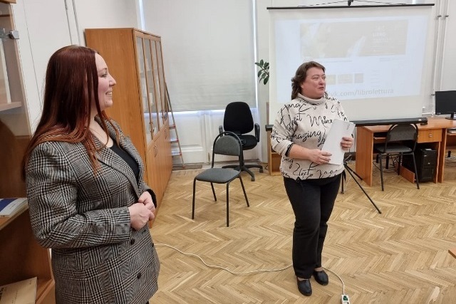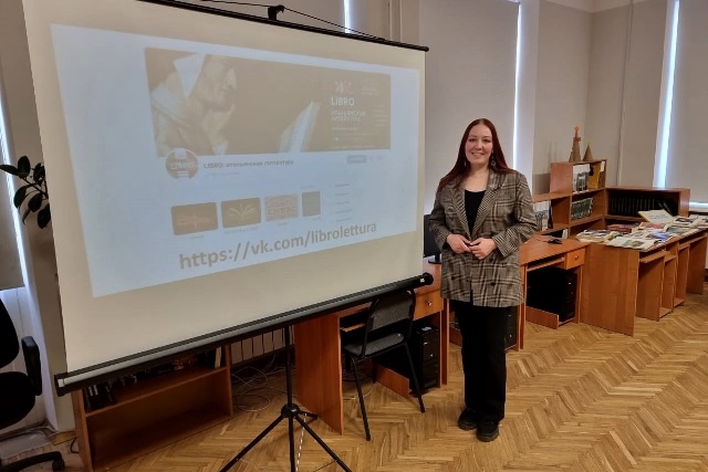13 декабря студенты познакомились с проектом СМИБС, посвященным итальянской литературе и языку, в рамках которого слушатели узнают о жизни и творчестве итальянских авторов, как ставших классиками, так и современных, об уникальных русско-итальянских культурных связях и судьбах писателей, а также имеют возможность изучать итальянский язык и пробовать себя в переводе оригинальных текстов. Молодые люди познакомились с сайтом СМИБС, ресурсом проекта «LIBRO» ВКонтакте, узнали, как интересно можно провести время в библиотеке и как важно самообразование в современной жизни.