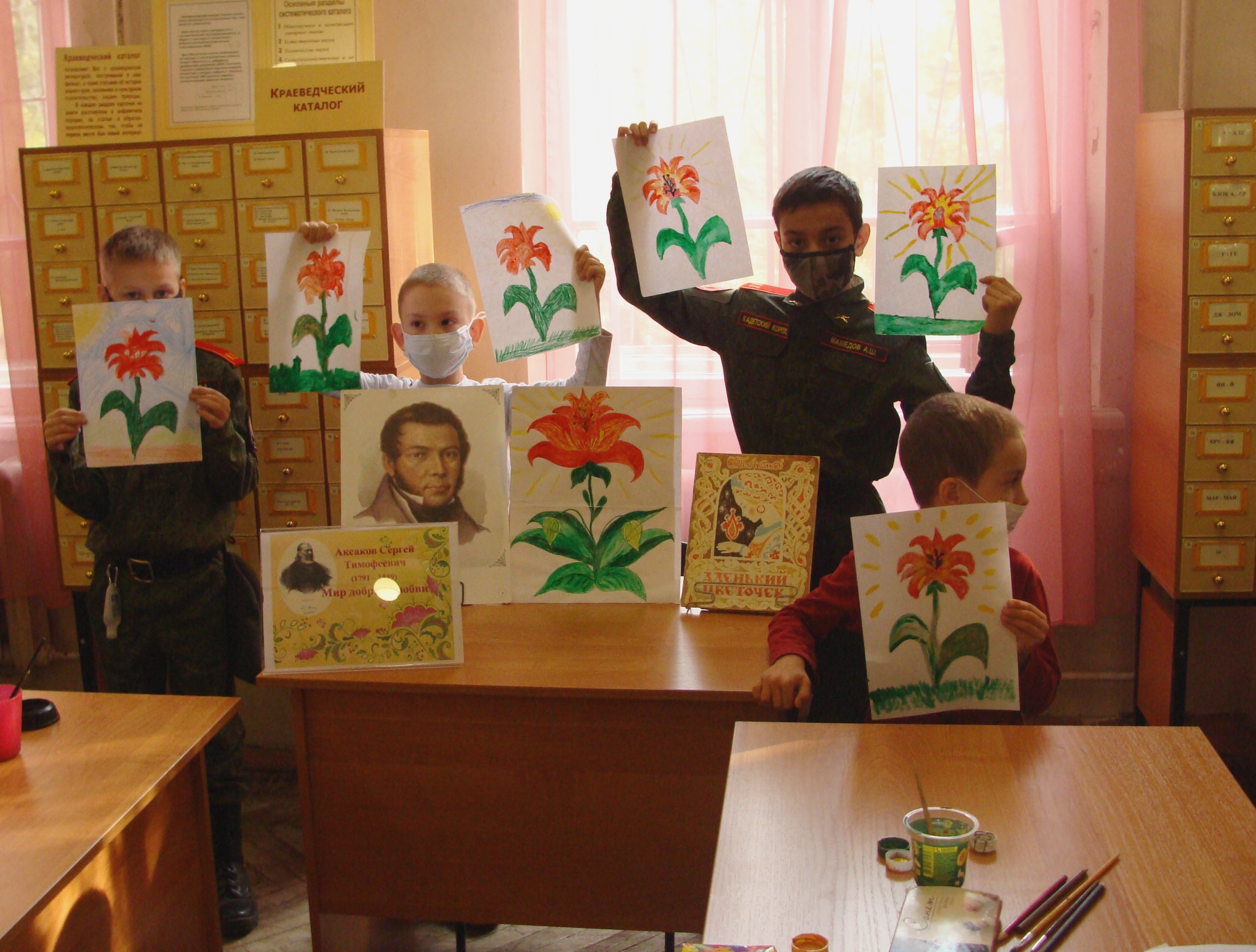 В филиале Библиотека №1 прошёл краеведческий час “ Где растет аленький цветочек?», в рамках которого был организован мастер-класс. Красочная презентация, сопровождавшая рассказ библиотекаря, познакомила слушателей с жизнью и творчеством Сергея Тимофеевича Аксакова. Ребятам было любопытно узнать, что знаменитая сказка об аленьком цветочке была посвящена внучке писателя Ольге Григорьевне и в первом издании носила название «Оленькин цветочек». История известной сказки «Аленький цветочек», которая была пересказана автору в детстве «ключницей Пелагеей», пересказывается Аксаковым своей внучке Оленьке, и сказка приобретает литературную форму и автора.