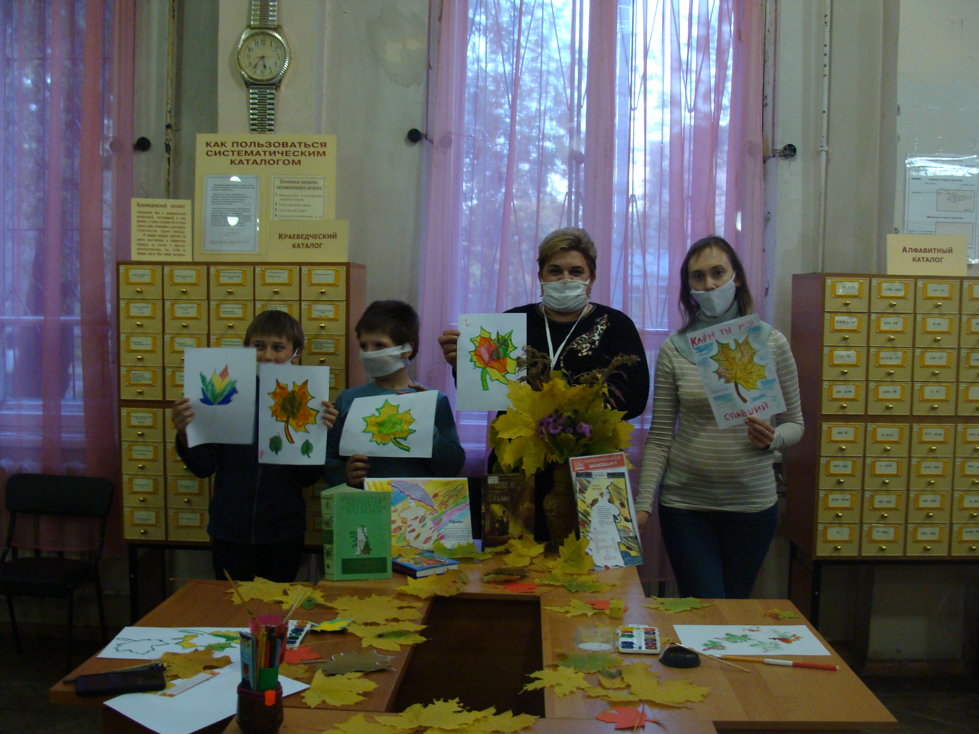 Участники творческой мастерской «Сто фантазий в голове» собрались в филиале Библиотека №11 были приглашены на мастер-класс «Золотая осень». Дети пришли с осенними кленовыми листочками, чтобы нарисовать их. Свою любовь к природе дети и взрослые выражали красками, рисуя листья клена. У всех участников мероприятия они получились разными: красными, желтыми, зелеными и очень красивыми! Затем библиотекарь предложила детям принять участие в разгадывании кроссворда про осень. Дети приняли активное участие в нем, проявили знания, эрудицию в отгадывании кроссворда. Все получили заряд бодрости и хорошего настроения.