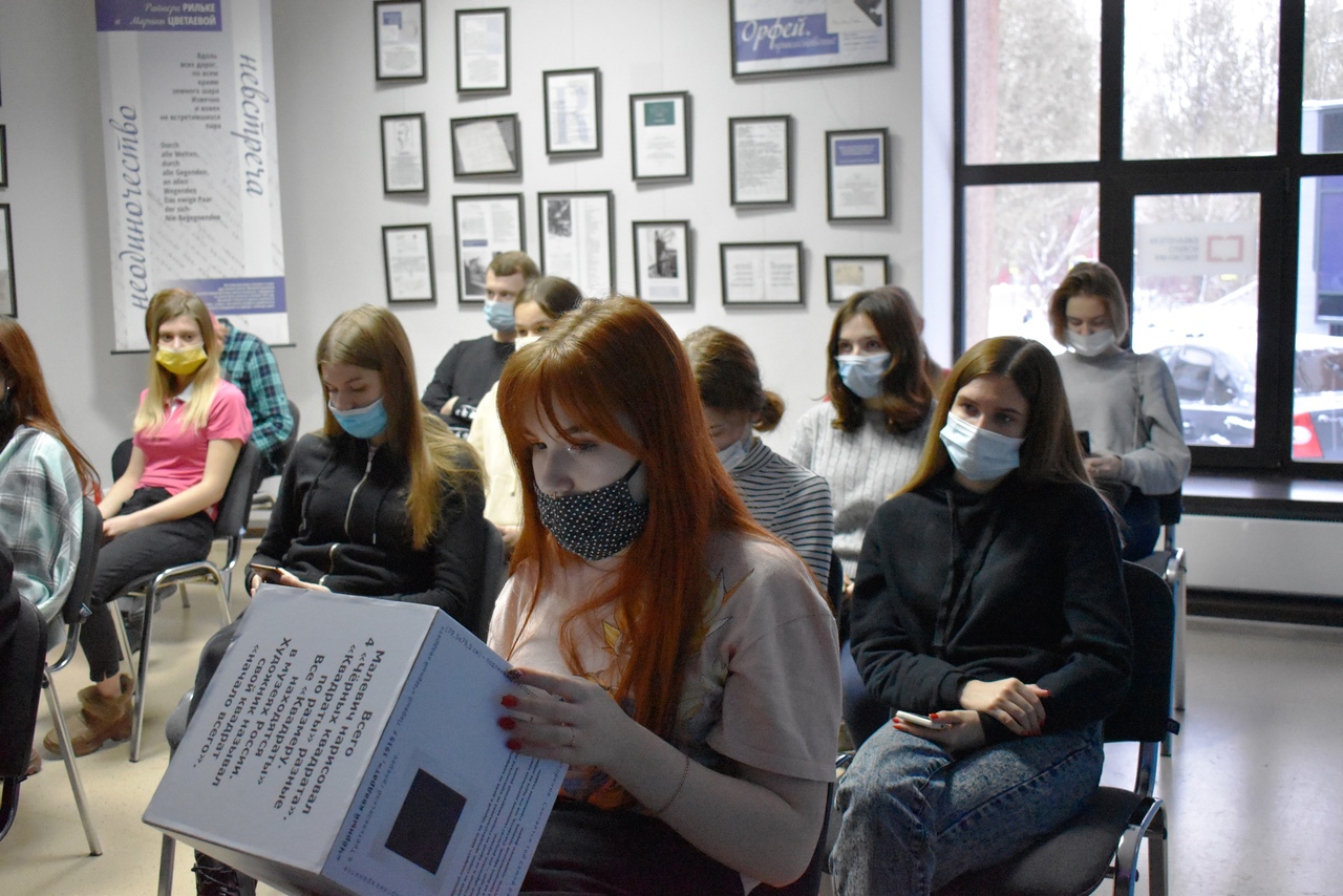 Выставка сопровождалась лекцией-беседой, которую вели филолог, ведущий библиограф МБУК г. о. Самара «СМИБС» Анна Синицкая и культуролог, куратор выставки Елена Савенкова. В беседе принимали участие педагог и учащиеся ГБОУ СО «ЛАП № 135» и постоянные посетители библиотеки.