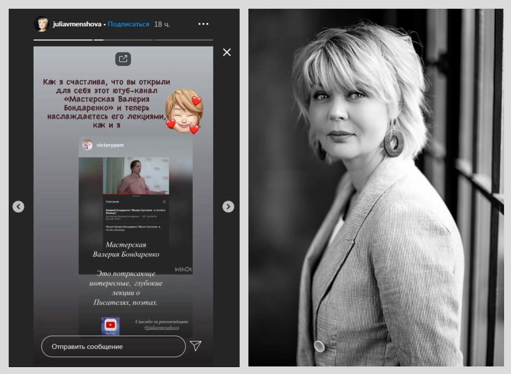 ЮЛИЯ МЕНЬШОВА, советская и российская актриса о проекте "Мастерская Валерия Бонд... -