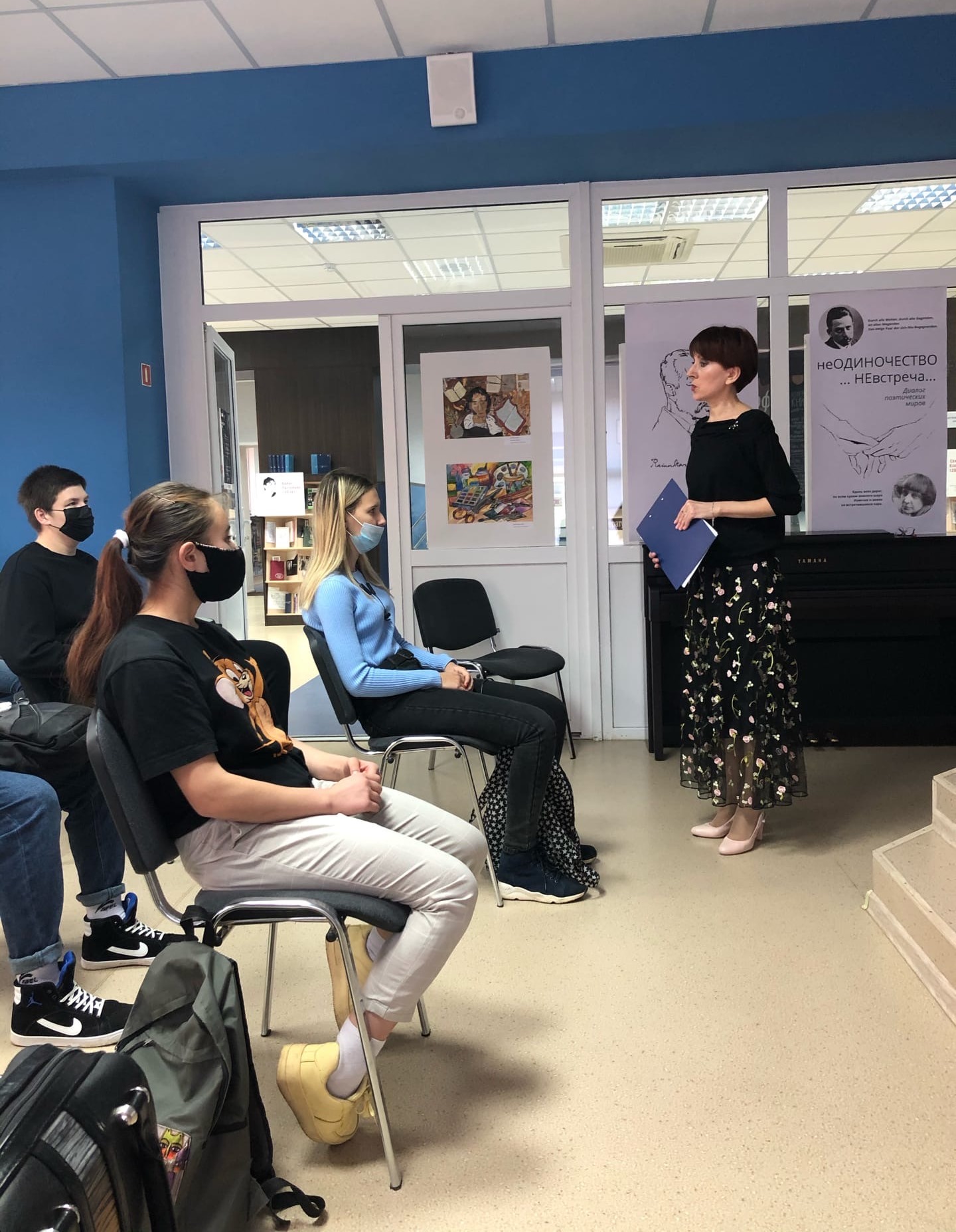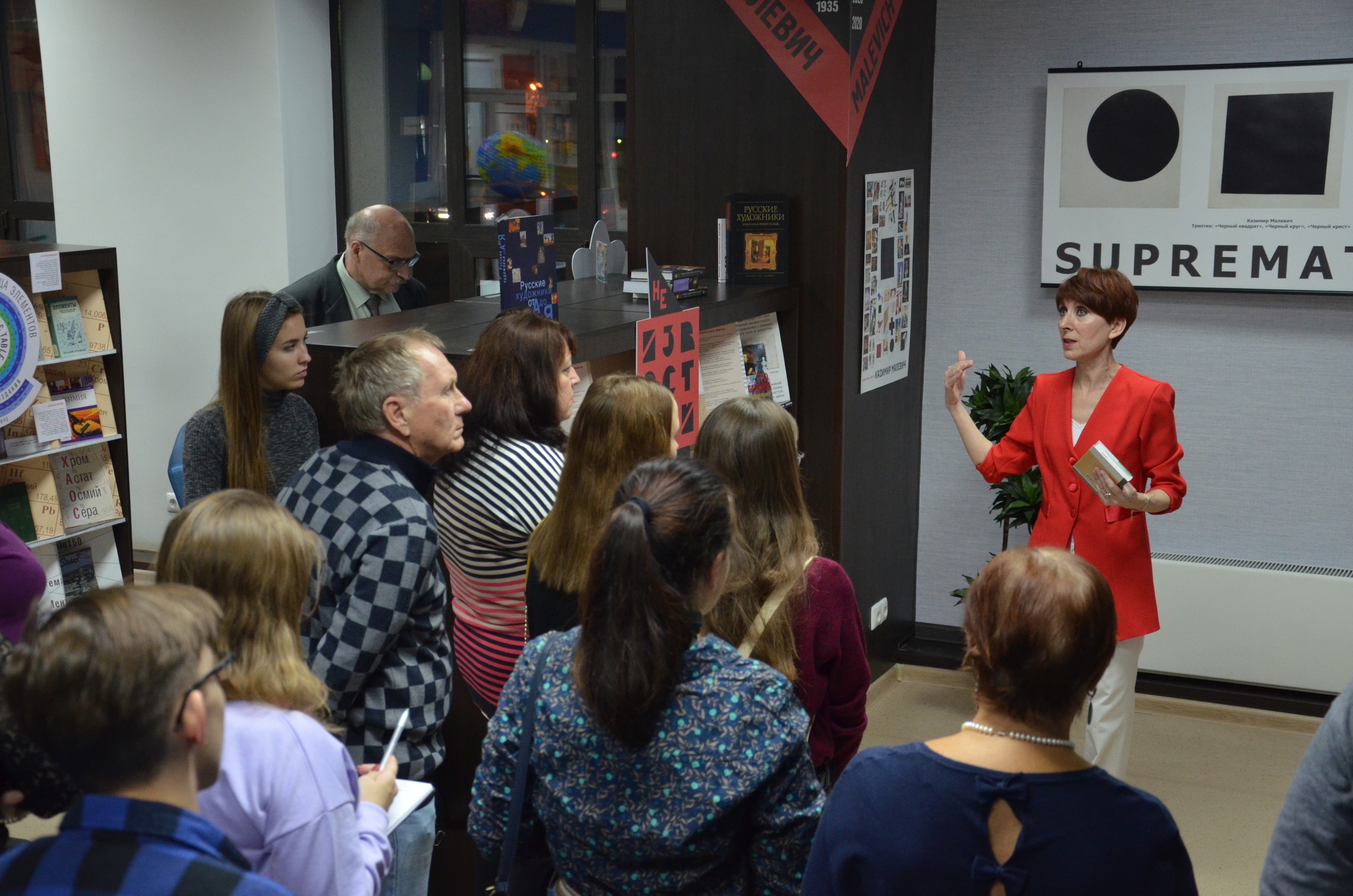 Выставка сопровождалась лекцией-беседой, которую вели филолог, ведущий библиограф МБУК г. о. Самара «СМИБС» Анна Синицкая и культуролог, куратор выставки Елена Савенкова. В беседе принимали участие педагог и учащиеся ГБОУ СО «ЛАП № 135» и постоянные посетители библиотеки.