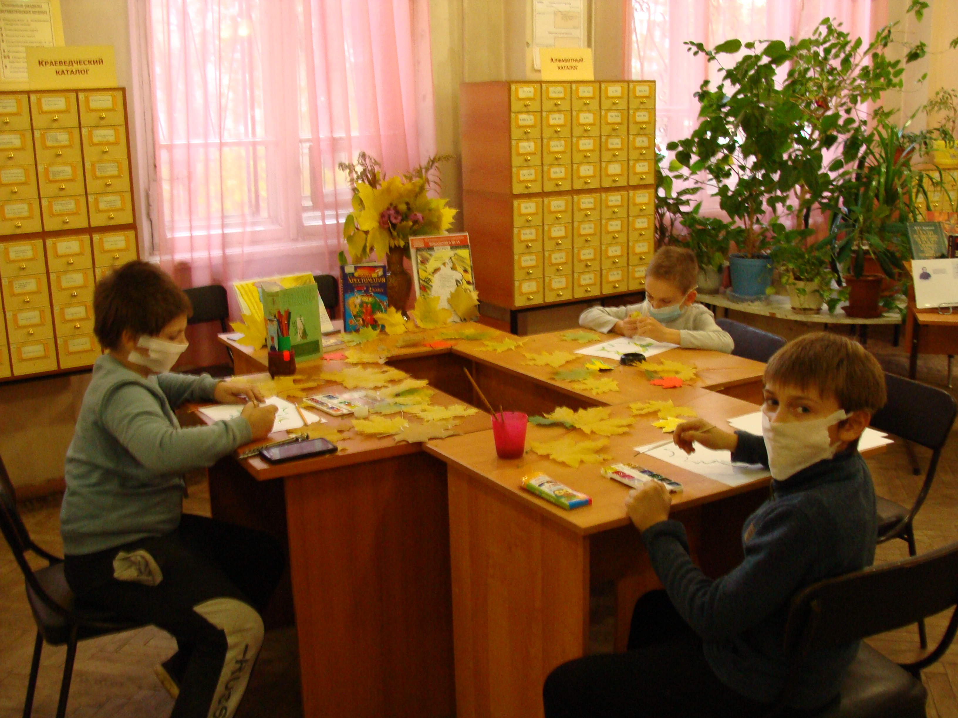 Участники творческой мастерской «Сто фантазий в голове» собрались в филиале Библиотека №11 были приглашены на мастер-класс «Золотая осень». Дети пришли с осенними кленовыми листочками, чтобы нарисовать их. Свою любовь к природе дети и взрослые выражали красками, рисуя листья клена. У всех участников мероприятия они получились разными: красными, желтыми, зелеными и очень красивыми! Затем библиотекарь предложила детям принять участие в разгадывании кроссворда про осень. Дети приняли активное участие в нем, проявили знания, эрудицию в отгадывании кроссворда. Все получили заряд бодрости и хорошего настроения.