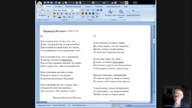 "Из европейской поэзии 16 - 17 веков" из цикла лекций Николая Тимофеевича Рымаря /25.02.2024г./