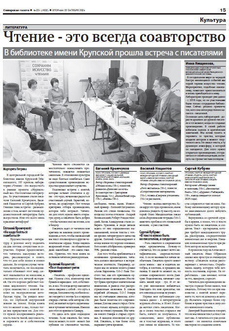 Мысли участников лаборатории о роли писателя опубликовали в "Самарской газете"