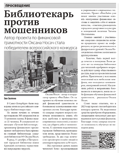 Об этом событии написали в «Самарской газеты» от 14.12.2024 года.