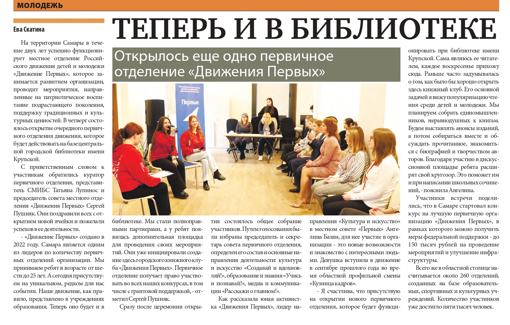 В Центральной городской библиотеке имени Н.К. Крупской состоялось торжественное открытие первичного отделения РДДМ «Движение первых».