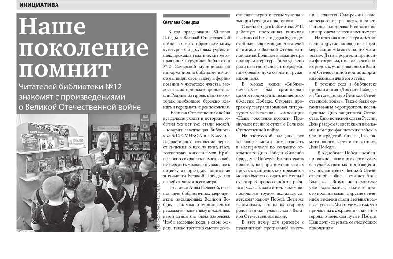 Подробнее о деятельности Библиотеки №12 написали в статье «Самарской газеты» №144 (8035) от 8 июля 2025 г.